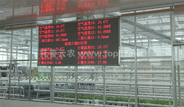 智慧農(nóng)業(yè)溫室大棚信息展示屏用于展示農(nóng)業(yè)大棚內(nèi)各無線傳感器采集的環(huán)境數(shù)據(jù)和現(xiàn)場場景;同時展示屏也是展示智慧農(nóng)業(yè)的一個窗口。溫室大棚無線監(jiān)測系統(tǒng)實現(xiàn)了對影響農(nóng)作物生長的環(huán)境傳感數(shù)據(jù)實時監(jiān)控智能調(diào)節(jié),采集現(xiàn)場的傳感信號包括:空氣溫濕度、光照、土壤溫度、CO2 濃度、土壤水分等,并實時準確的輸出指令智能控制包括大棚風(fēng)機、微噴罐、滴灌、卷簾機、補光燈、CO2 發(fā)生器、CO2風(fēng)機等現(xiàn)場設(shè)備。同時支持遠程無線信息傳輸功能,可配專用的攝像裝置,實現(xiàn)對現(xiàn)場農(nóng)作物和環(huán)境真實狀況呈現(xiàn)。