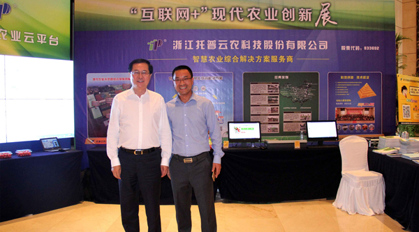 浙江省委副書記、代省長車俊一行也蒞臨托普云農(nóng)展區(qū),公司董事長陳渝陽、常務副總朱旭華向車省長介紹講解了公司物聯(lián)網(wǎng)項目的實施應用情況以及現(xiàn)階段在現(xiàn)代農(nóng)業(yè)領域取得的成績,得到了車省長的肯定與贊許。