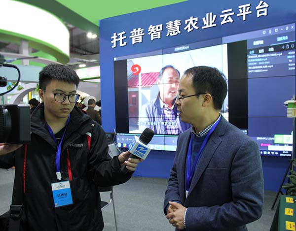 這一番“互聯(lián)網(wǎng)+農(nóng)業(yè)”的介紹也獲得了浙江衛(wèi)視的關(guān)注。記者來(lái)到托普云農(nóng)展位,公司副總朱旭華向記者介紹了公司獲得的科研成就及展出的智能化軟硬件系統(tǒng)。主要有:托普云農(nóng)農(nóng)業(yè)“四情”監(jiān)控系統(tǒng)、設(shè)施農(nóng)業(yè)監(jiān)控系統(tǒng)、水肥一體化監(jiān)控系統(tǒng)、智慧農(nóng)業(yè)云平臺(tái)等農(nóng)業(yè)物聯(lián)網(wǎng)系統(tǒng)、平臺(tái)及土壤墑情監(jiān)控系統(tǒng)硬件、農(nóng)藥殘留速測(cè)儀、相關(guān)智能硬件設(shè)備(如遠(yuǎn)程傳輸智能蟲(chóng)情測(cè)報(bào)燈、溫室通、大田六合一無(wú)線(xiàn)傳感器、植物本體傳感器)。