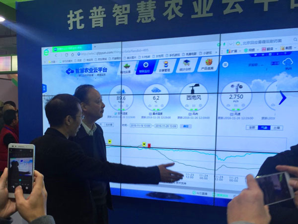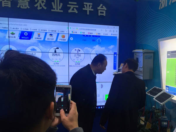 11月26日,浙江省人大常委會黨組書記、副主任茅臨生參觀托普云農(nóng)展位。茅臨生饒有興致地參觀了托普云農(nóng)展位的各區(qū)域,詳細詢問了托普云農(nóng)農(nóng)業(yè)“四情”監(jiān)控系統(tǒng)、設(shè)施農(nóng)業(yè)監(jiān)控系統(tǒng)、水肥一體化監(jiān)控系統(tǒng)、智慧農(nóng)業(yè)云平臺等系統(tǒng)平臺的相關(guān)工作原理和實施效果。茅臨生還來到儀器展示區(qū),由托普云農(nóng)展區(qū)負責(zé)人為其介紹了傳感器、土壤墑情監(jiān)控系統(tǒng)硬件、農(nóng)藥殘留速測儀等智能硬件設(shè)備。這次參觀,充分感受到茅臨生對浙江智慧農(nóng)業(yè)發(fā)展的關(guān)注和支持;鼓舞了托普云農(nóng)員工的士氣,激發(fā)了大家的工作熱情,托普云農(nóng)將繼續(xù)為浙江省現(xiàn)代農(nóng)業(yè)建設(shè)貢獻力量。