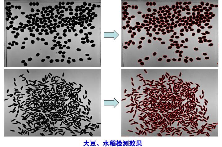 玉米自動考種系統(tǒng)的組成總的來說是由軟件和硬件兩部分組成的,但是細分的話,可以認為玉米自動考種系統(tǒng)是由高精度稱重傳感器、高分辨率攝像頭、高亮度背板光源組成的,玉米自動考種系統(tǒng)非常適用于測量種子的數量、重量、千粒重等參數,被廣泛應用于水稻、種子、小麥、玉米、大豆和油菜等種子的考種作業(yè)當中,而從實際的應用效果中,也可以看出,玉米自動考種系統(tǒng)能夠清晰的拍攝種子圖像,并進行自動化的智能識別,測定效率和準確率都,以下是玉米自動考種系統(tǒng)分別用于大豆、水稻和小麥的檢測效果。