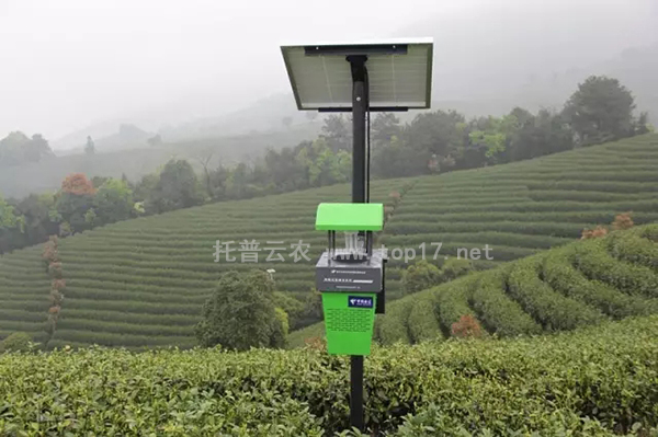 茶園專用殺蟲燈,可物理誘殺茶園主要害蟲,尤其是茶小綠葉蟬和鱗翅目尺蠖科害蟲,并最大限度避免對天敵昆蟲的誘殺,是托普云農(nóng)和茶學(xué)專家陳宗懋院士團隊歷經(jīng)三年精心研制。