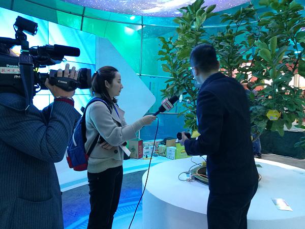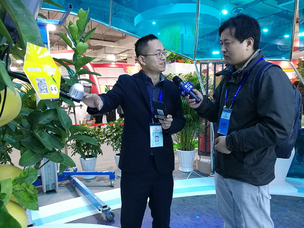 “在這棵文旦樹上,我們安裝了無線葉面溫度傳感器、光照強度傳感器、果實膨大傳感器。通過這些傳感器采集傳輸的數據,我們就能知道整個樹的生長秘密”。展會現場,現代農業(yè)與信息化的互融發(fā)展,吸引浙江衛(wèi)視、杭州電視臺、蕭山日報、舟山電視臺、金華電視臺等記者前來采訪。