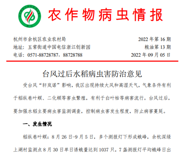 當?shù)刂脖2块T發(fā)布病蟲情報