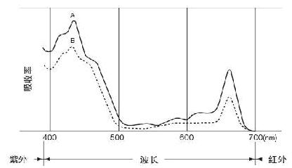 從圖中可以看出,葉綠素在藍(lán)色區(qū)域(400—500nm)和紅色區(qū)域(600—700nm)范圍內(nèi)吸收達(dá)到了峰值,但在近紅外區(qū)域卻沒有吸收。也就是說,不同波長的光線,葉綠素的吸收量是不同的。這也正好符合了我們的要求,通過不同的吸收量,來測(cè)出spad值。