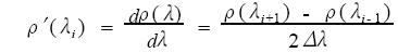 式中,ρ′(λi ) 為λi 處的一階微分光譜,λi 是波段i 的波長(zhǎng)值、ρ(λi ) 是波長(zhǎng)λi 處的光譜值(如反射率、透射率等) ,Δλ是波長(zhǎng)λi - 1到λi 的間隔,視波段波長(zhǎng)而定。