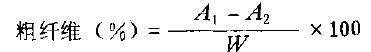式中:A1—古氏坩堝+粗纖維+殘渣中灰分,g;