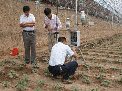 8月22日,內(nèi)蒙古自治區(qū)赤峰市松山區(qū)氣象局在全家梁萬畝無公害蔬菜園區(qū)新安裝了9要素農(nóng)田小氣候自動(dòng)監(jiān)測儀,該儀器觀測項(xiàng)目包括:0㎝、10㎝、40㎝地溫,1米、1.5米的溫度、濕度,以及二氧化碳、總輻射、光和有效輻射。通過此項(xiàng)工作的開展,氣象服務(wù)松山設(shè)施農(nóng)業(yè)又增添了新內(nèi)容。