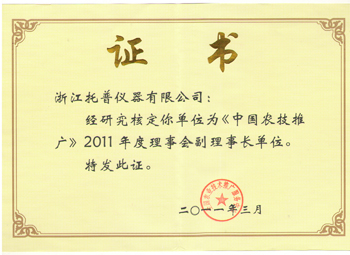 您現(xiàn)在的位置:中國(guó)農(nóng)業(yè)儀器網(wǎng) > 托普風(fēng)采 >熱烈祝賀托普儀器成為《中國(guó)農(nóng)技推廣》2011年度理事會(huì)副理事長(zhǎng)單位
