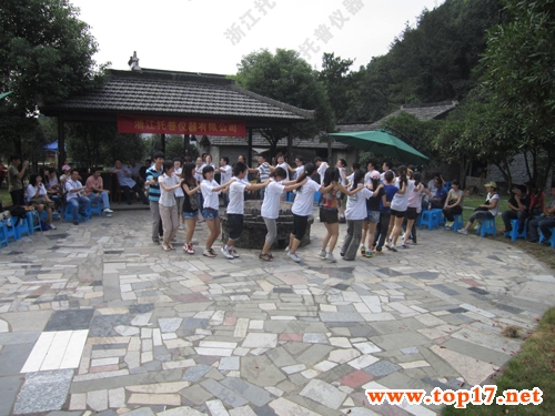 早上8:30分由三個(gè)團(tuán)隊(duì)帶領(lǐng)著公司全體員工浩浩蕩蕩的向目的地----杭州大清谷進(jìn)軍,約在早上9點(diǎn)整全體員工安全到達(dá)目的地。9.10整活動正式拉開序幕,第一項(xiàng)是領(lǐng)導(dǎo)講話,接下來是全體員工集體亮相,為了加強(qiáng)員工之前的相互了解和感情交流,主持人可是費(fèi)了不少心思,(把全體人員按結(jié)婚與否分為兩組席地而坐)。