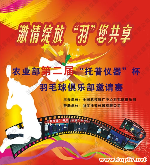 為了推進(jìn)農(nóng)業(yè)學(xué)術(shù)創(chuàng)新,構(gòu)建農(nóng)業(yè)學(xué)術(shù)交流公共平臺,第二屆農(nóng)業(yè)部“托普儀器”杯羽毛球俱樂部邀請賽于2011年12月24日8:00-12:00(周六上午)在北京陽光羽毛球館隆重舉行。本次活動由全國農(nóng)技推廣中心羽毛球俱樂部主辦、浙江托普儀器有限公司全程贊助承辦。本次比賽由農(nóng)技推廣中心杭大鵬書記主持,浙江托普儀器有限公司總經(jīng)理陳渝陽先生和參賽俱樂部領(lǐng)隊發(fā)言。歷屆賽事吸引了眾多農(nóng)業(yè)部羽毛球愛好者的關(guān)注及媒體的大量報道。此次活動主題以“開展文體活動 推進(jìn)文化建設(shè)”,來體現(xiàn)羽毛球團(tuán)隊氛圍及精神面貌,本次賽事會本著公平、公正的態(tài)度完成,并且對參賽人員名次給予相應(yīng)的獎品鼓勵。誠邀農(nóng)業(yè)部羽毛球愛好者關(guān)注此比賽、齊聚北京、共襄盛舉!