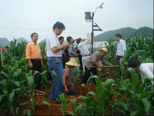 硯山縣2010年被農(nóng)業(yè)部定為土壤樣方監(jiān)測新增網(wǎng)點縣,在監(jiān)測過程中,每月技術(shù)人員必須2次親自到三個監(jiān)測點觀測數(shù)據(jù)上報省土肥站節(jié)水科和農(nóng)業(yè)部節(jié)水處。為減輕工作量,提高觀測數(shù)據(jù)的準(zhǔn)確性,2011年6月硯山縣從浙江省托普儀器有限公司購買了一套無線田間氣象站和一套土壤墑情旱情監(jiān)測儀器,兩套儀器分別安裝在平遠鎮(zhèn)新平社區(qū)德安村和江那鎮(zhèn)統(tǒng)卡村民委盤龍山生態(tài)農(nóng)業(yè)開發(fā)有限責(zé)任公司葡萄基地內(nèi),兩個儀器都采用太陽能供電,可自動采集、存儲和遠程傳輸0—100㎝四個土層的土壤水分和土壤溫度,無線田間氣象站同時還可自動測定空氣溫濕度、紫外線強度、輻射強度、風(fēng)向、風(fēng)速和降雨量,目前兩套儀器在省土肥站及公司技術(shù)人員的指導(dǎo)下安裝調(diào)試完畢,數(shù)據(jù)能自動采集、傳輸和上報,數(shù)據(jù)通過分析、整理,將為硯山縣農(nóng)業(yè)生產(chǎn)提供科學(xué)的農(nóng)事建議。