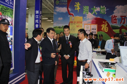 圖為:全國(guó)農(nóng)技推廣中心杭大鵬書記等領(lǐng)導(dǎo)參觀公司展位