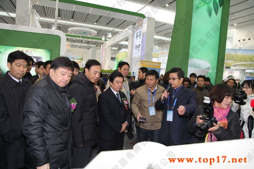圖為:中國(guó)農(nóng)業(yè)技術(shù)推廣協(xié)會(huì)會(huì)長(zhǎng)尹成杰等人參觀稻米會(huì)現(xiàn)場(chǎng)