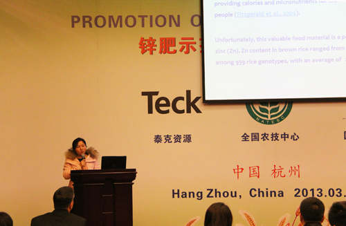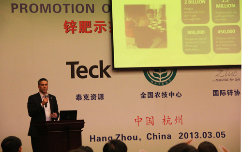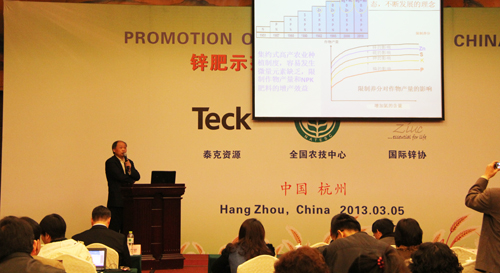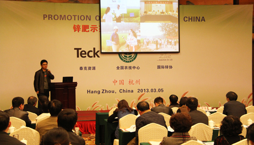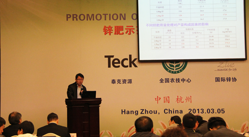在上午的鋅肥示范推廣技術培訓與研討會上,會議邀請了國際專家加拿大泰克資源安德魯·格林教授、國際鋅協(xié)會樊明憲教授、國內(nèi)專家浙江大學副教授馮英、天津市土壤肥料工作站鄭育鎖科長講解了鋅肥技術以及鋅肥在中國農(nóng)業(yè)生產(chǎn)中試驗示范研究結果。據(jù)國際鋅協(xié)會報道,全球種植谷物的土地中有50%存在缺鋅的潛在危險、而我國土壤普遍缺鋅。農(nóng)作物缺鋅主要與干旱缺水、鹽堿、漬澇等農(nóng)田環(huán)境有關,科學施用鋅肥是解決農(nóng)業(yè)缺鋅問題的主要途徑。近年來,隨著節(jié)水農(nóng)業(yè)的不斷發(fā)展,水肥一體化逐漸成為新的鋅肥科學施用方式。科學施用鋅肥,能夠提高作物產(chǎn)量,改善農(nóng)產(chǎn)品品質(zhì)。為促進鋅肥的科學施用,廣泛宣傳鋅對作物生產(chǎn)和人體健康的作用,全國農(nóng)技推廣中心與國際鋅協(xié)會、加拿大泰克資源合作開展鋅肥示范推廣工作,并大力培養(yǎng)應用技術人才、開展田間技術指導。
