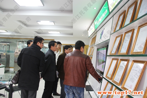 參觀結(jié)束后,陳總經(jīng)理還為各位領(lǐng)導(dǎo)詳細(xì)講解了托普儀器物聯(lián)網(wǎng)系統(tǒng)在設(shè)施園藝、果園、墑情監(jiān)測(cè)、農(nóng)場(chǎng)等中的實(shí)際應(yīng)用以及以及由托普儀器協(xié)助完成的成功案例。吳處長(zhǎng)對(duì)托普如今的物聯(lián)網(wǎng)研發(fā)技術(shù)表示了肯定,他說到,如今要做好現(xiàn)代化農(nóng)業(yè)建設(shè),就需要像托普儀器這樣有前瞻性的企業(yè)起到良好的帶頭作用。最后,吳處長(zhǎng)等領(lǐng)導(dǎo)希望托普儀器為浙江省農(nóng)業(yè)現(xiàn)代化多出力,并鼓勵(lì)托普要堅(jiān)持走信息化發(fā)展道路,努力研發(fā)新型農(nóng)業(yè)技術(shù),促進(jìn)浙江省農(nóng)業(yè)現(xiàn)代化的發(fā)展。