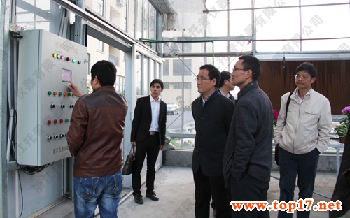 圖為:托普儀器技術(shù)人員為吳處長(zhǎng)等領(lǐng)導(dǎo)演示物聯(lián)網(wǎng)智能控制柜的操作