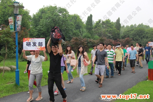 2013年6月15日,在明媚的陽(yáng)光下,杭州;市巧鷳B(tài)樂(lè)園迎來(lái)了一支充滿活力的隊(duì)伍——浙江托普儀器有限公司的全體員工!280余名員工按照部門順序,排著長(zhǎng)龍浩浩蕩蕩地向著目的地前進(jìn),一張張興高采烈的臉龐,散發(fā)著托普人無(wú)限的活力!