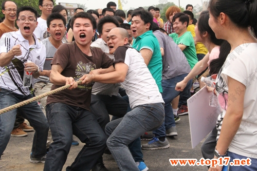 首先進(jìn)行的是拔河比賽。各隊(duì)都挑選出最強(qiáng)壯的選手,行兵布陣,站好隊(duì)形,拉好繩子。一聲令下,比賽開(kāi)始。一時(shí)間,觀戰(zhàn)人員的加油聲和比賽人員的號(hào)子聲響成一片,現(xiàn)場(chǎng)的氣氛瞬間沸騰了起來(lái)!最終“好漢隊(duì)”以絕對(duì)的優(yōu)勢(shì)獲得了拔河比賽的第一名。