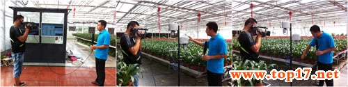記者:所謂物聯(lián)網(wǎng),其實簡單的說就是物物相連,互相感知。大家看我身后的一組探頭(托普儀器固定式無線農(nóng)業(yè)氣象綜合監(jiān)測站),包括這個是測量溫度的,這個是測量土壤墑情的,上面還有測量二氧化碳濃度的,測量光照強度的。那這些測量數(shù)據(jù)都會上傳到我身后的中央控制室內(nèi)的計算機里,通過計算機的計算,再控制風扇、噴灌…這些設(shè)備的運轉(zhuǎn)。