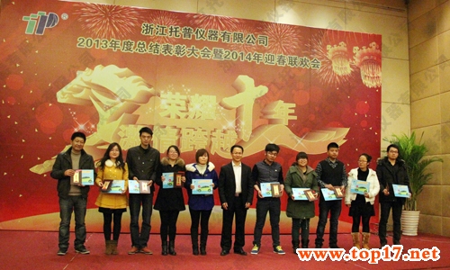 2013年1月24日,浙江托普儀器有限公司2013年度工作總結大會在海外海.納川大酒店隆重召開。經過一上午的計劃總結大會后,下午迎來托普10周年之表彰大會。會議由銷售部張文超主持,表彰大會在奮進的進行曲中拉開了序幕。