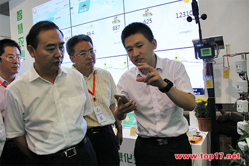 會(huì)議期間,安徽省農(nóng)業(yè)委員會(huì)孫正東主任蒞臨托普云農(nóng)農(nóng)業(yè)物聯(lián)網(wǎng)展區(qū),并細(xì)致觀摩了托普云農(nóng)所展出的大田“四情”監(jiān)控系統(tǒng)、設(shè)施農(nóng)業(yè)監(jiān)控系統(tǒng)、土壤墑情監(jiān)控系統(tǒng)等多種農(nóng)業(yè)物聯(lián)網(wǎng)綜合服務(wù)平臺(tái),以及與之相關(guān)的多種儀器和智能硬件設(shè)備。在參觀過(guò)程之中,孫正東主任詳細(xì)詢問(wèn)了大田“四情”監(jiān)控系統(tǒng)、遠(yuǎn)程傳輸智能蟲(chóng)情測(cè)報(bào)燈、植物本體傳感器、固定式無(wú)線農(nóng)業(yè)氣象綜合監(jiān)測(cè)站等系統(tǒng)設(shè)備。陳曦經(jīng)理為其一一進(jìn)行介紹。