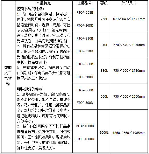 智能人工氣候箱儀器型號(hào)列表: