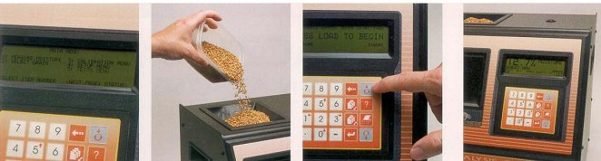 1.待測谷物倒入漏斗; 2.按進(jìn)樣鍵,自動進(jìn)樣 ; 3.儀器測試并顯示結(jié)果;