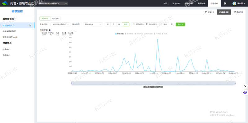 3、AI識(shí)別計(jì)數(shù),實(shí)時(shí)監(jiān)測(cè):AI識(shí)別番茄潛葉蛾,自動(dòng)計(jì)數(shù),準(zhǔn)確率高達(dá)95%以上,自動(dòng)生成番茄潛葉蛾發(fā)生趨勢(shì)圖。