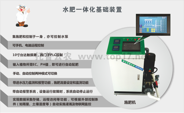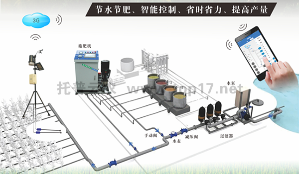 托普水肥一體化智能灌溉系統(tǒng)可以幫助生產(chǎn)者很方便的實現(xiàn)自動的水肥一體化管理。系統(tǒng)由系統(tǒng)云平臺、墑情數(shù)據(jù)采集終端、視頻監(jiān)控、施肥機、過濾系統(tǒng)、閥門控制器、電磁閥、田間管路等組成。