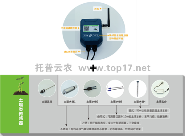數(shù)據(jù)采集是實現(xiàn)信息化管理、智能化控制的基礎(chǔ)。由于農(nóng)業(yè)行業(yè)的特殊性,傳感器不僅布控于室內(nèi),還會因為生產(chǎn)需要布控于田間、野外,深入土壤或者水中,接受風(fēng)雨的洗禮和土壤水質(zhì)的腐蝕。根據(jù)現(xiàn)代農(nóng)業(yè)發(fā)展對水份監(jiān)測的需求,研發(fā)出多種傳感器。