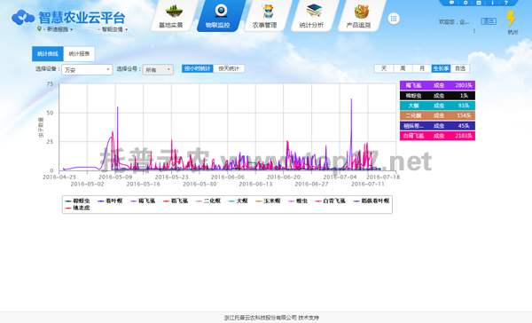 作物重大病蟲害數(shù)字化監(jiān)測預(yù)警系統(tǒng)通過搭建在田間的智能蟲情監(jiān)測設(shè)備,可以無公害誘捕殺蟲,綠色環(huán)保,同時利用GPRS/3G移動無線網(wǎng)路,定時采集現(xiàn)場圖像,自動上傳到遠(yuǎn)端的物聯(lián)網(wǎng)監(jiān)控服務(wù)平臺,工作人員可隨時遠(yuǎn)程了解田間蟲情情況與變化,制定防治措施。通過系統(tǒng)設(shè)置或遠(yuǎn)程設(shè)置后自動拍照將現(xiàn)場拍攝的圖片無線發(fā)送至監(jiān)測平臺,平臺自動記錄每天采集數(shù)據(jù),形成蟲害數(shù)據(jù)庫,可以各種圖表、列表形式展現(xiàn)給農(nóng)業(yè)專家進(jìn)行遠(yuǎn)程診斷。