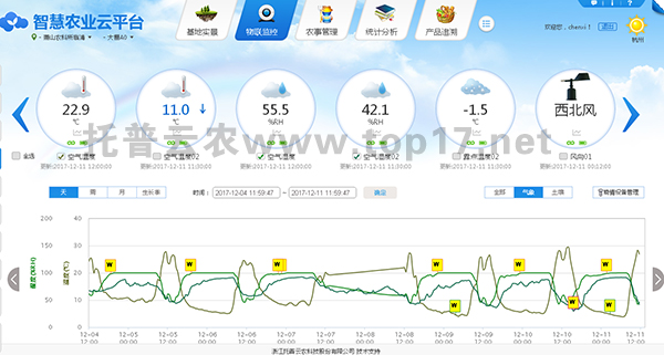 4.氣象數(shù)據(jù)監(jiān)測分析:采集區(qū)域土壤墑情及空氣溫濕度、二氧化碳、光照強度等參數(shù),形成圖形報表及數(shù)據(jù)曲線,以供專業(yè)人員進行數(shù)據(jù)分析對比。
